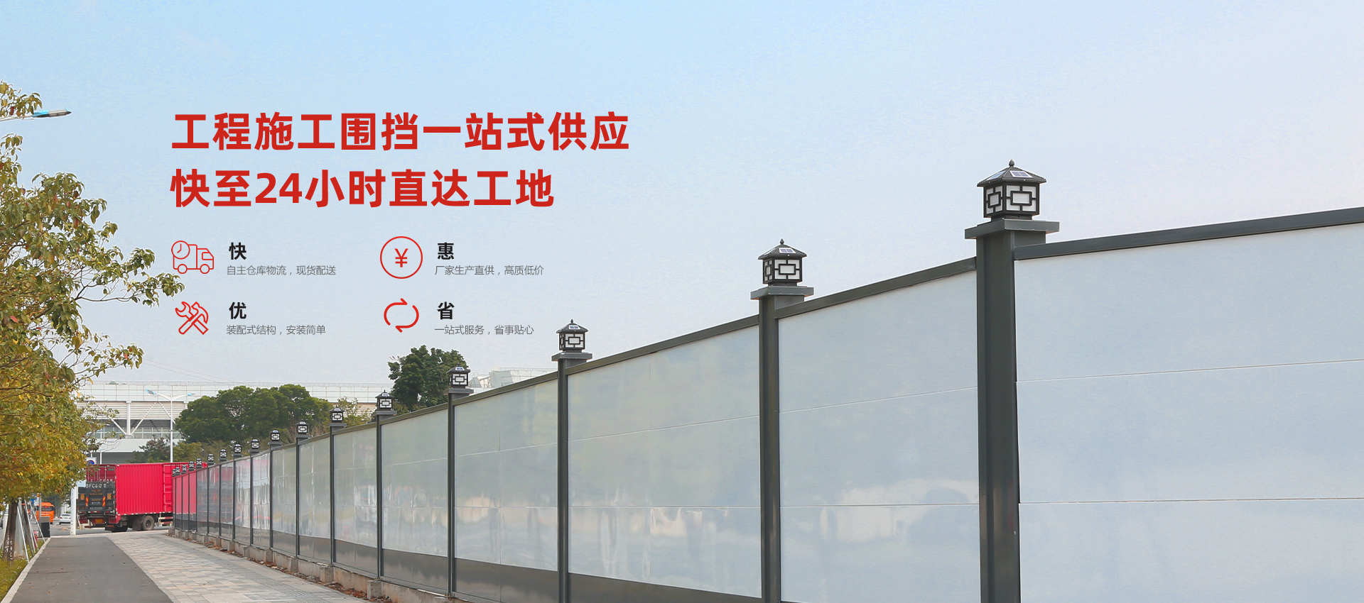 旭東施工圍擋,卡槽式安裝、拆裝損耗低,扣板式設計、可疊放、便于運輸和儲存,可多次重復使用,符合國家環(huán)保政策。